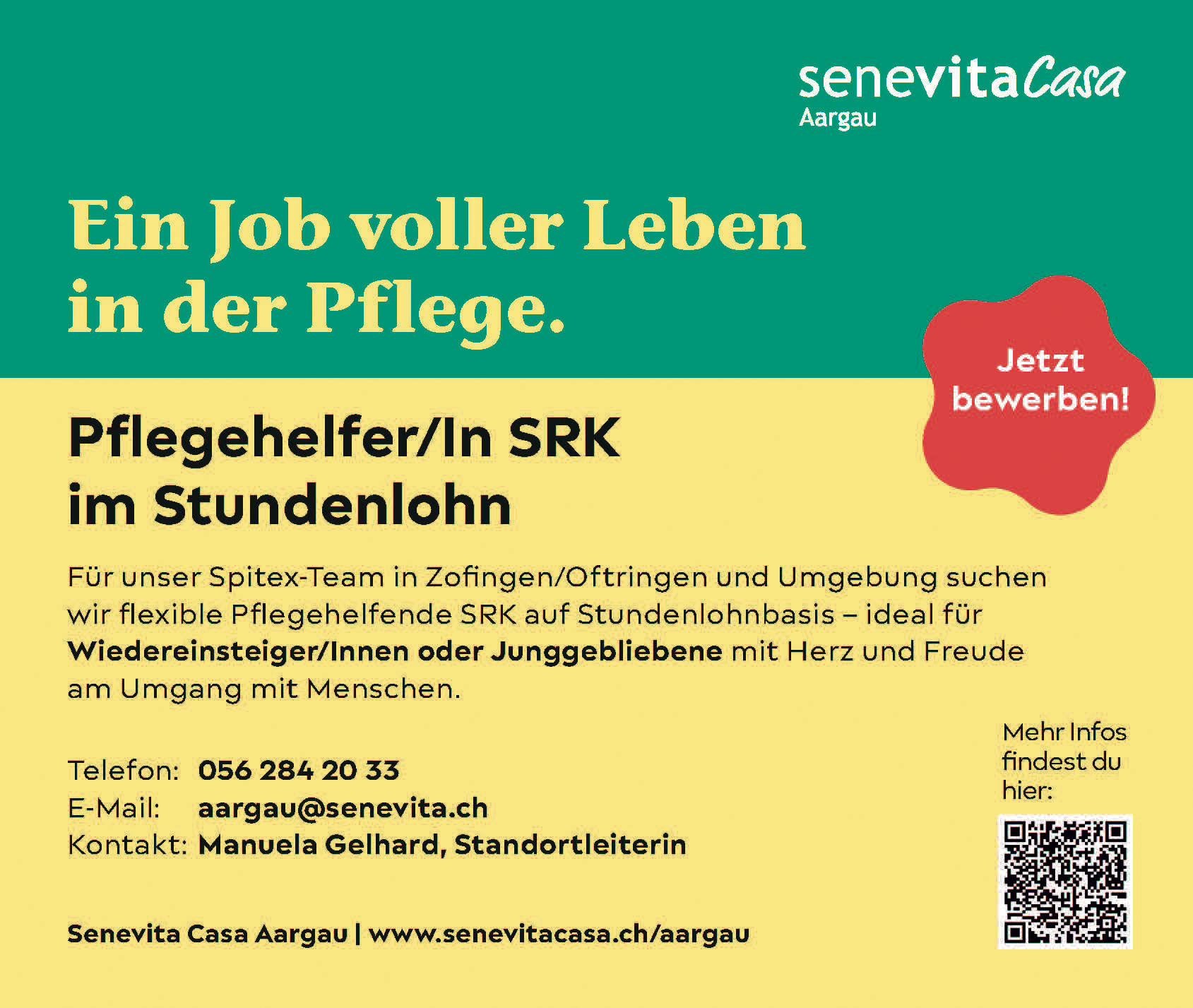 Freelance Teilzeit @Sen­evi­ta Casa Aar­gau veröffentlicht 1 Woche ago