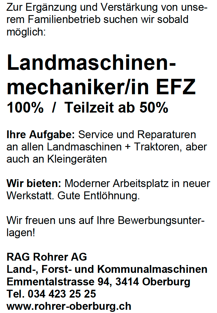 Landmaschinen-mechaniker/in EFZ 100% / Teilzeit ab 50%
