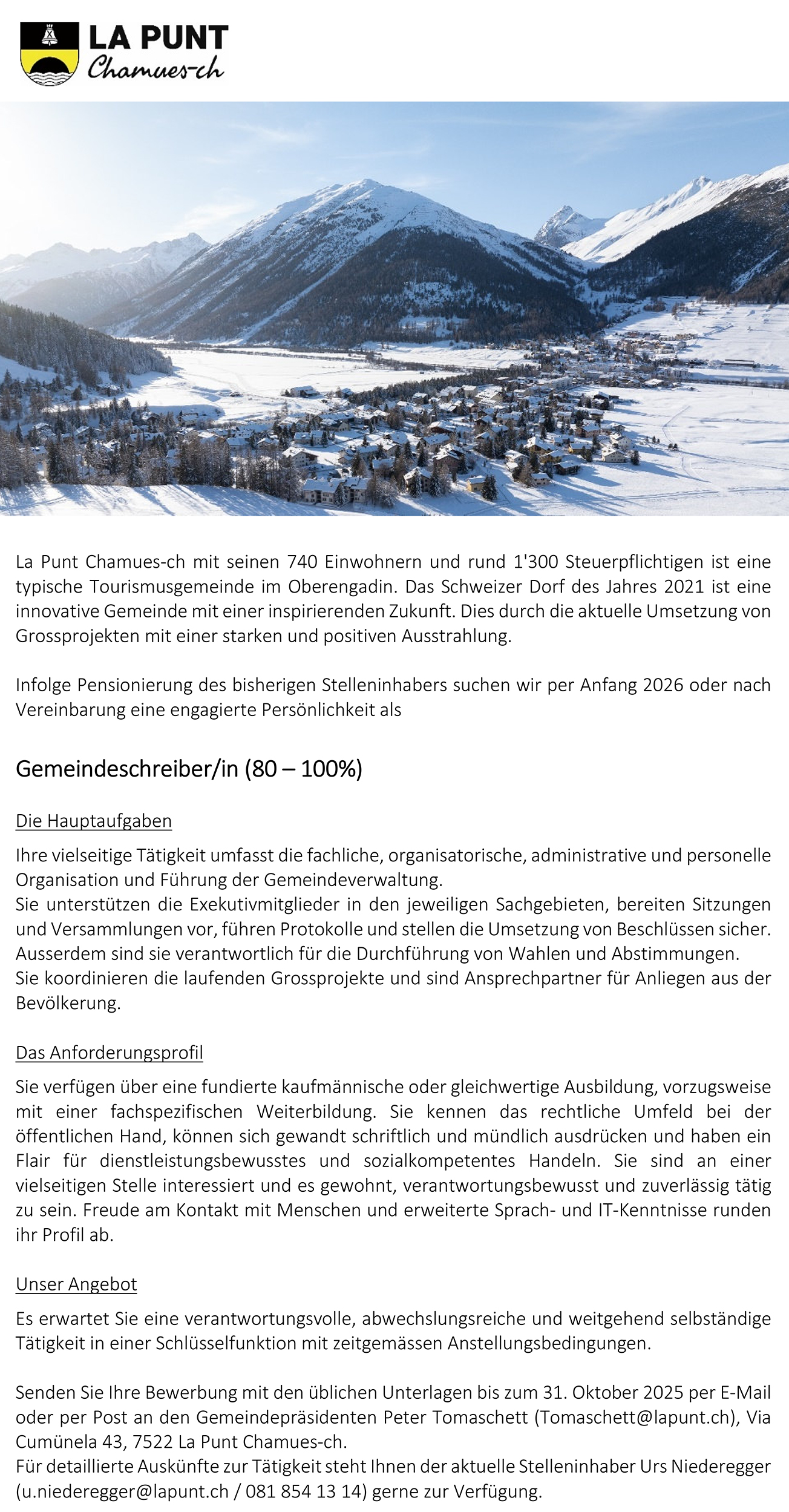 Gemeindeschreiber/in (80 — 100%)