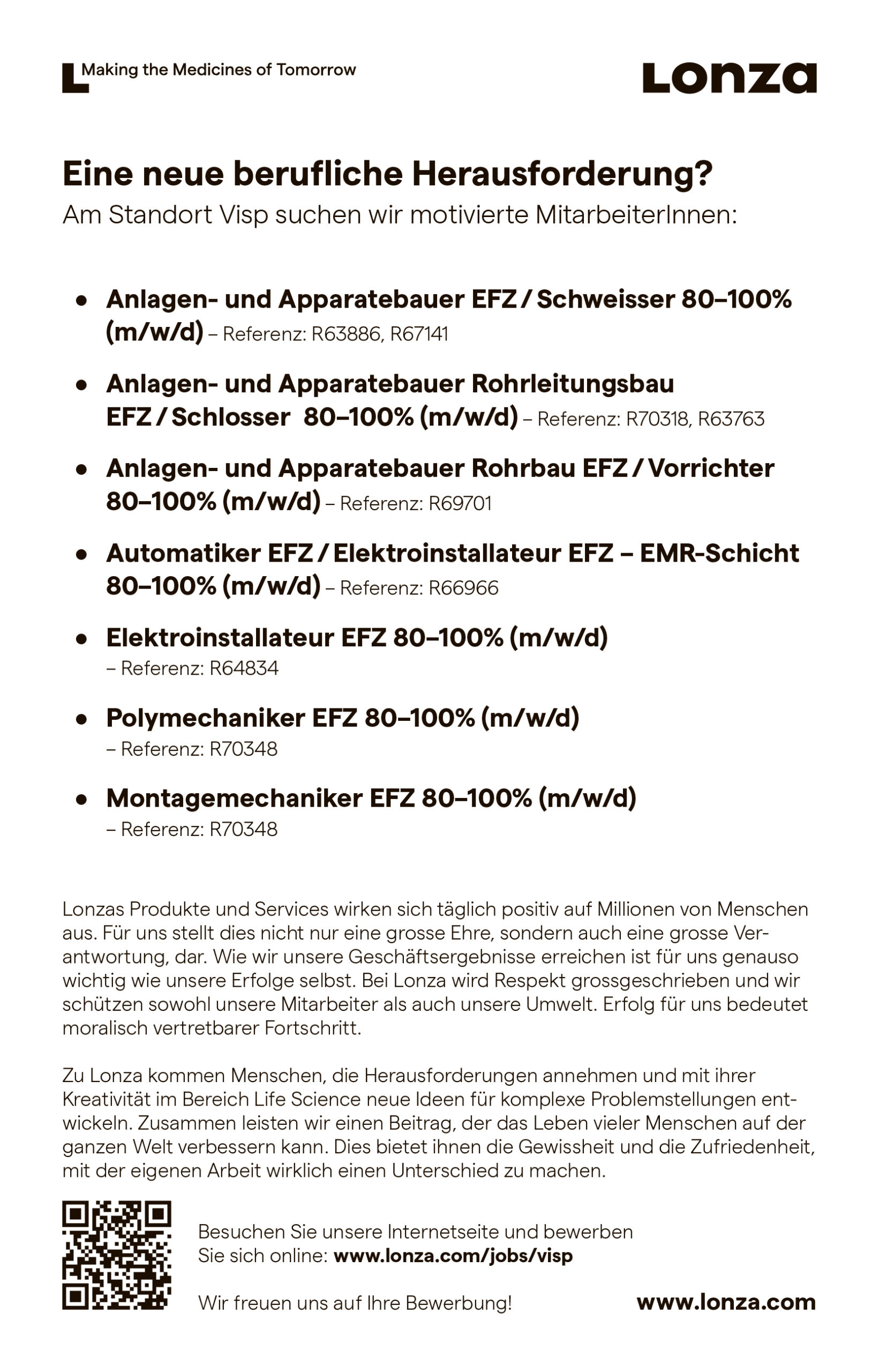 Teilzeit Vollzeit @Lonza veröffentlicht 16 Stunden agoJob-Beschreibung