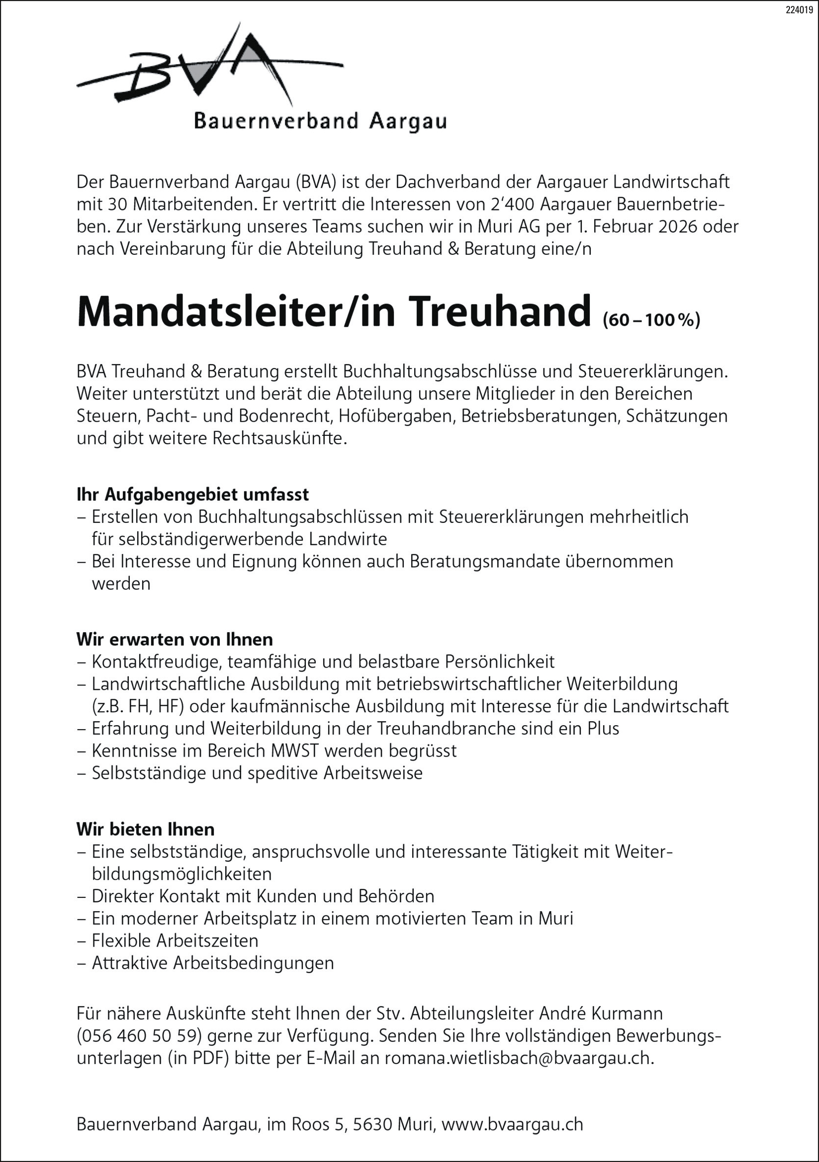 Teilzeit Vollzeit @Bauernverband Aargau veröffentlicht 2 Wochen agoJob-Beschreibung