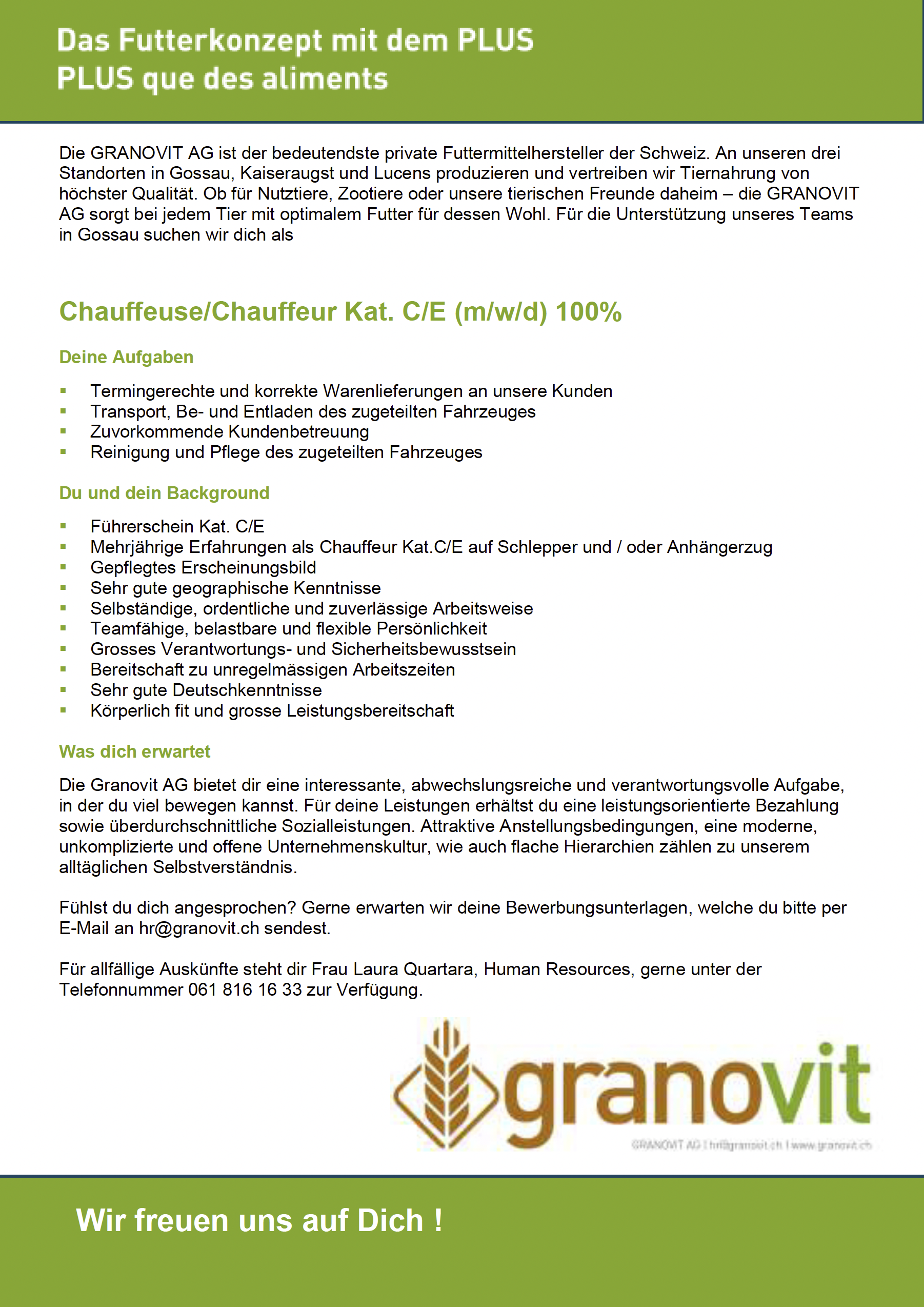 Vollzeit @Granovit AG veröffentlicht 2 Tagen agoJob-Beschreibung