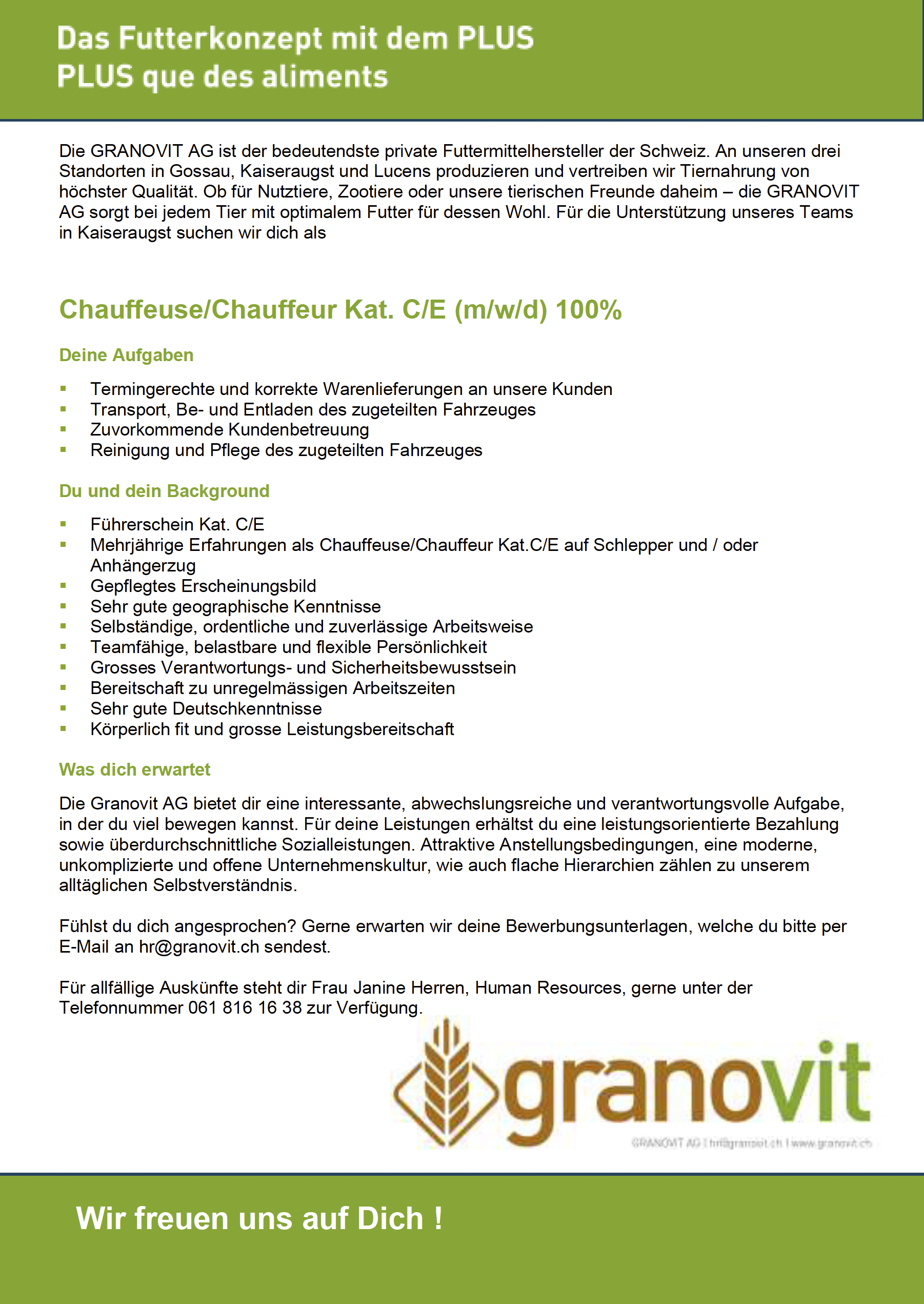Vollzeit @Granovit AG veröffentlicht 2 Tagen agoJob-Beschreibung