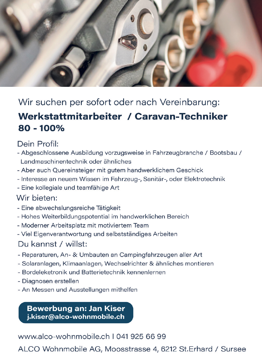 Teilzeit Vollzeit @ALCO Wohn­mo­bil AG veröffentlicht 2 Wochen ago