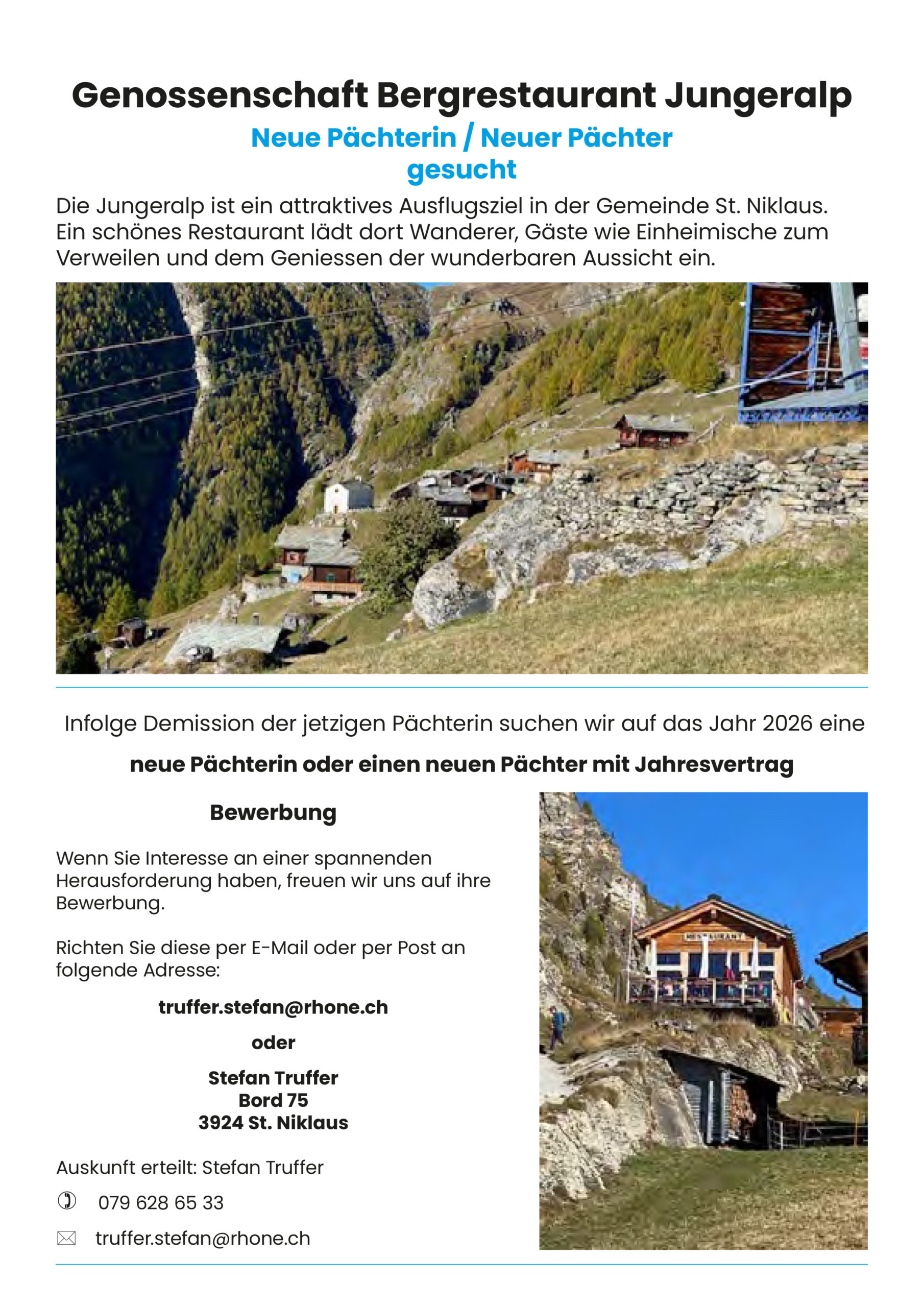 befristet @Berg­re­stau­rant Jun­ger­alp veröffentlicht 4 Stunden ago