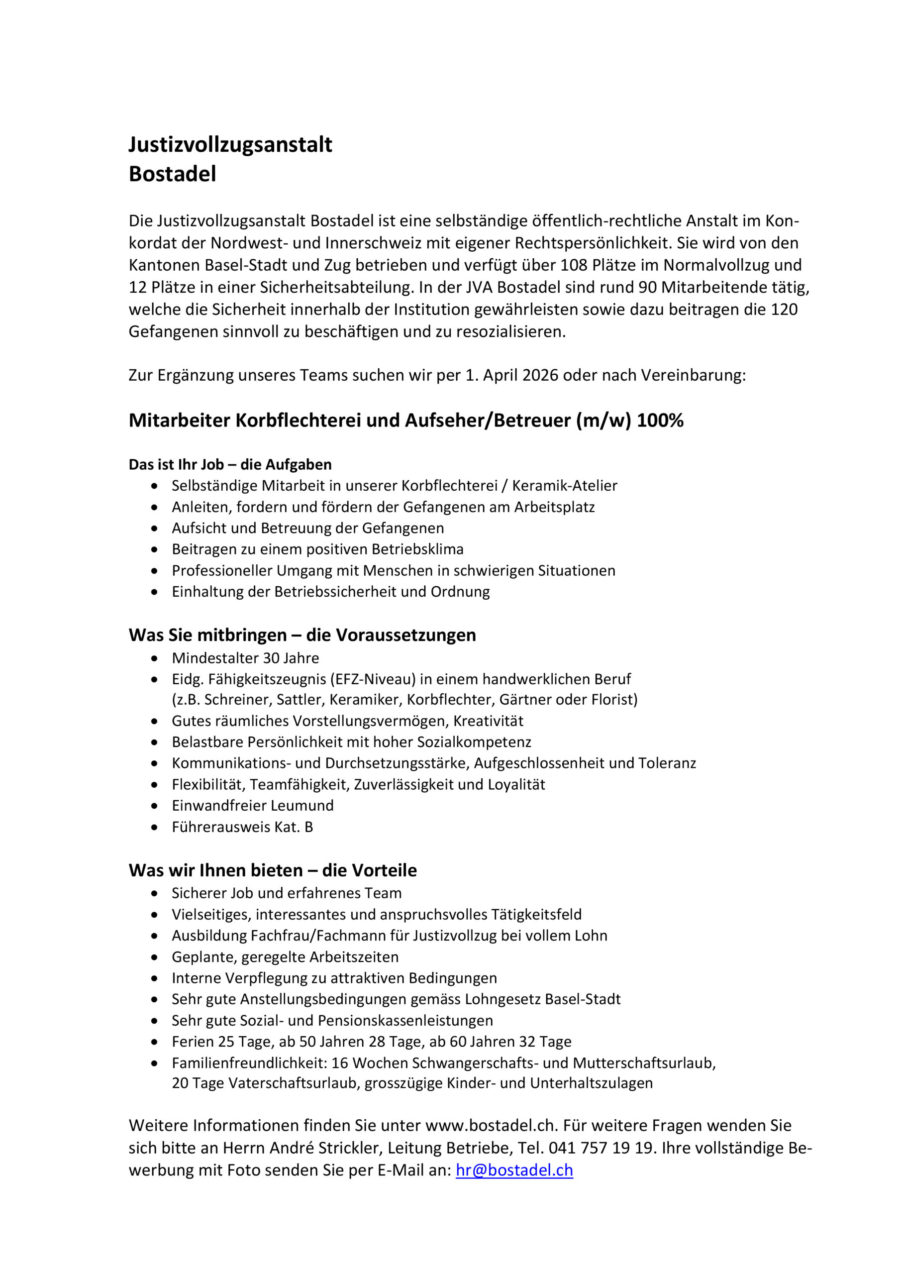 Vollzeit @Jus­tiz­voll­zugs­an­stalt Bosta­del veröffentlicht 2 Tagen ago