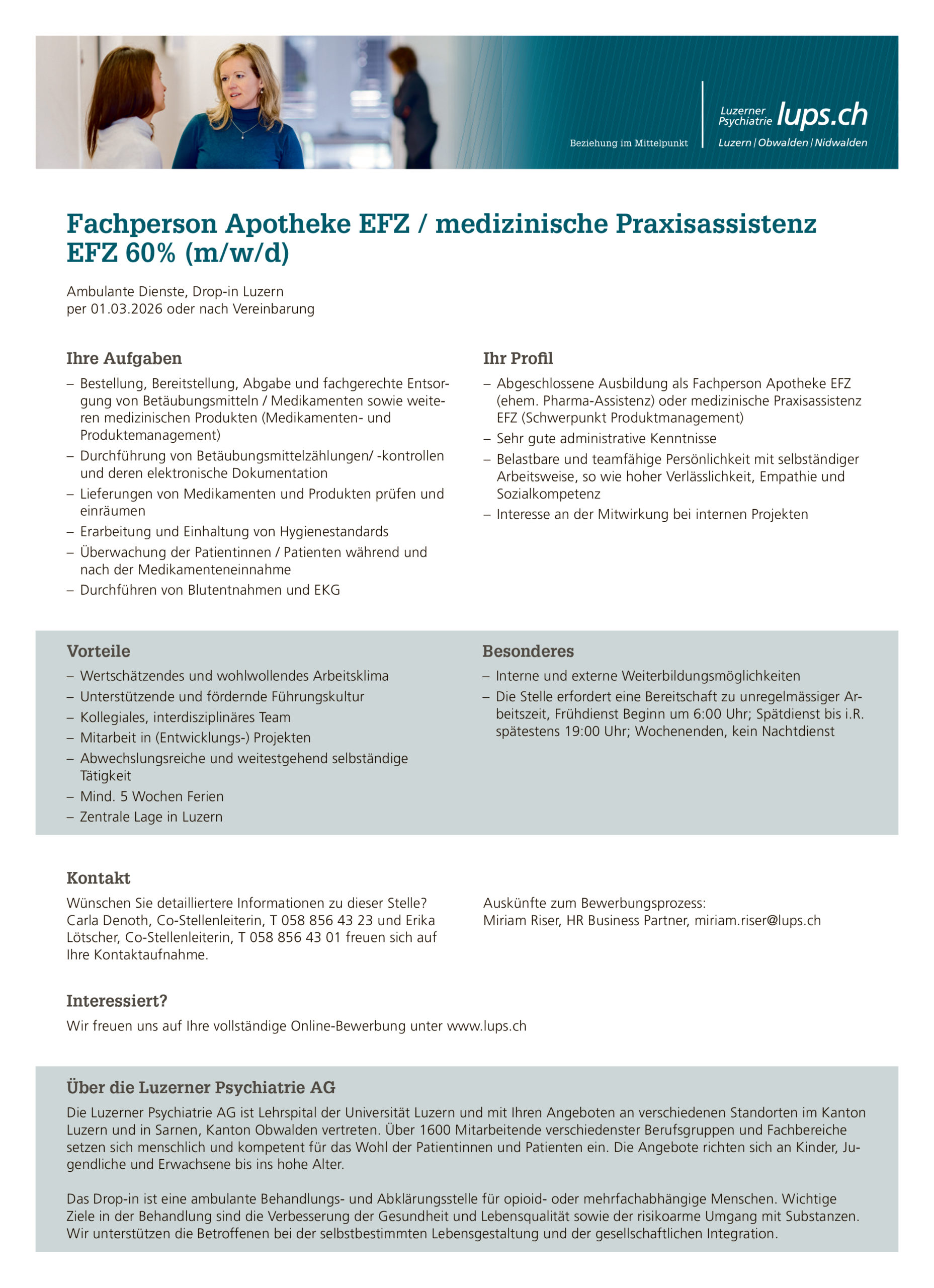 Teilzeit @Luzer­ner Psych­ia­trie AG veröffentlicht 1 Tag ago