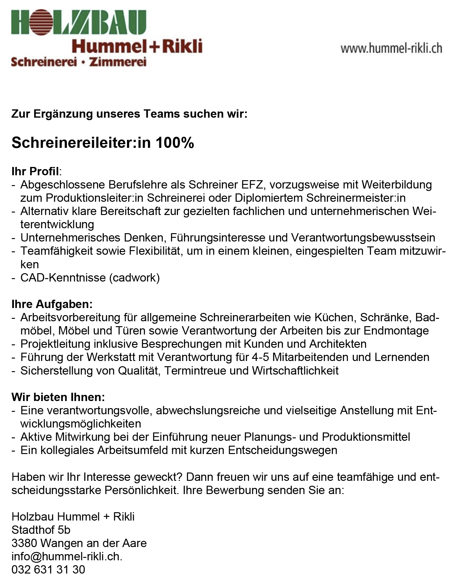 Vollzeit @Holz­bau Hum­mel + Rik­li veröffentlicht 3 Tagen ago