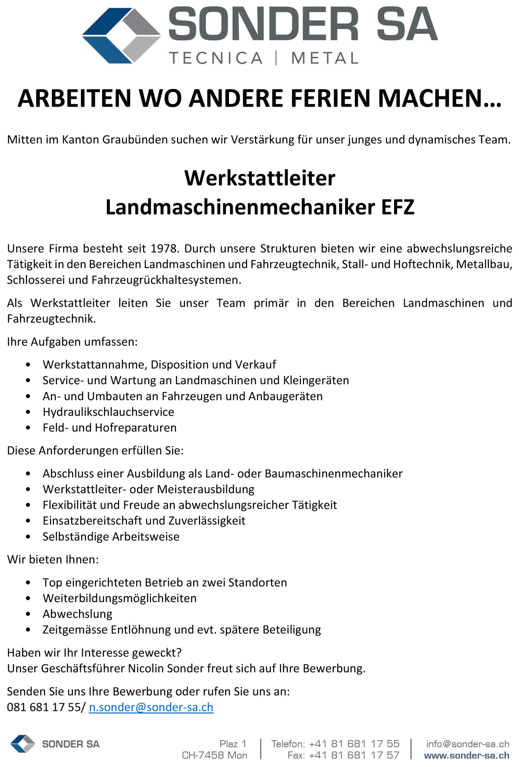Werkstattleiter Landmaschinenmechaniker EFZ