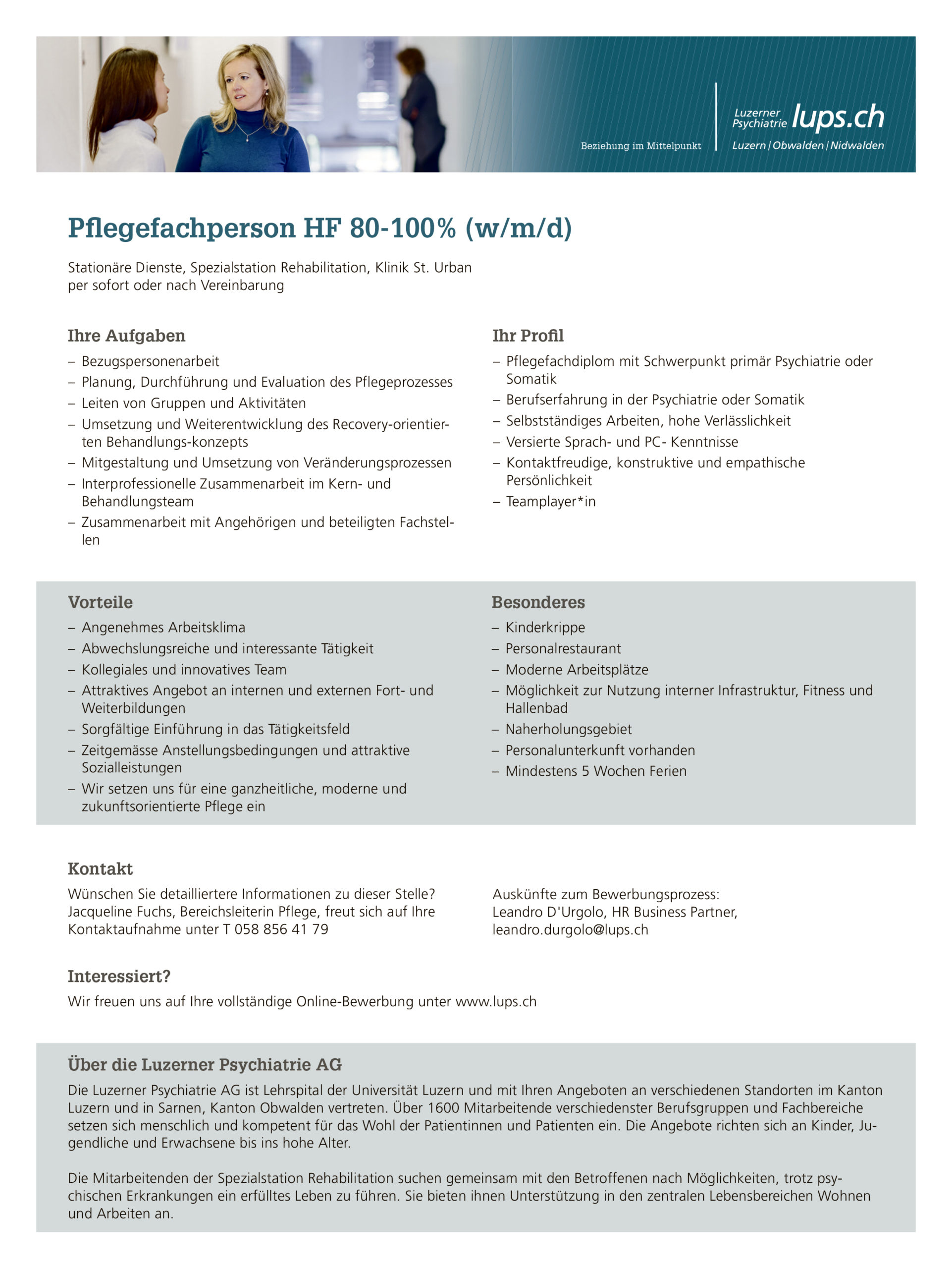 Teilzeit Vollzeit @Luzer­ner Psych­ia­trie AG veröffentlicht 23 Stunden ago